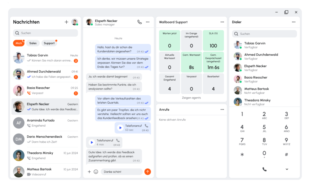 Diverse Sip-Telefone/DECT-Systeme (auch Multizelle) werden unterstützt. Chat, umfangreiche Contact-Center Funktionalität, Kalender-Modul, Microsoft365 Integration mit Teams Telefonie und viele weitere Leistungsmerkmale, die die Produktivität und Effizienz in Ihrem Unternehmen steigern.